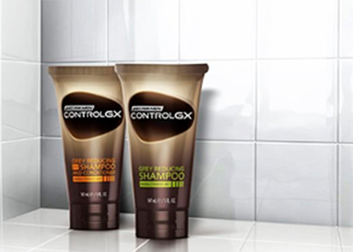 La propuesta Control GX, que incluye shampoo y acondicionador para hombres con canas, promete reducir gradualmente el gris del cabello. Y esta idea la refuerza en los envases a través de la combinación de tonos ligeros y oscuros en la gama del marrón.
