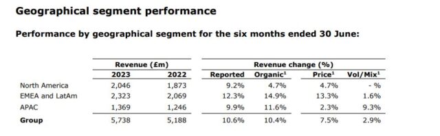 En un análisis por regiones geográficos, Haleon reportó que en América del Norte sus ingresos registraron un incremento interanual del 9,2% a £2.046 millones, en tanto que en EMEA & LATAM ascendieron 12,3% a £2.323 millones. Por su parte, en Asia-Pacífico subieron 9,9% £1.369 millones.