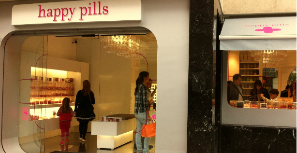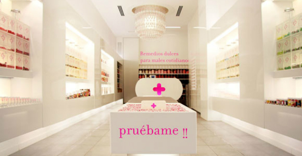 La idea fundadora vendría de España, donde la empresa Happy Pills tiene 6 tiendas con golosinas pero montadas en locales que emulan a una farmacia. Ver sitio.