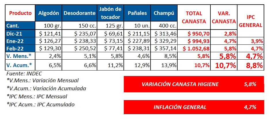En este 2022 la inflación pica en punta. Esta semana, el INDEC dio a conocer las cifras de febrero, que reflejan una canasta de higiene, que se disparó un 5,8%. En el mismo mes el que se desbocó fue el champú, que aumentó un 8,5% y muy por encima de la inflación general que fue del 4.7%.