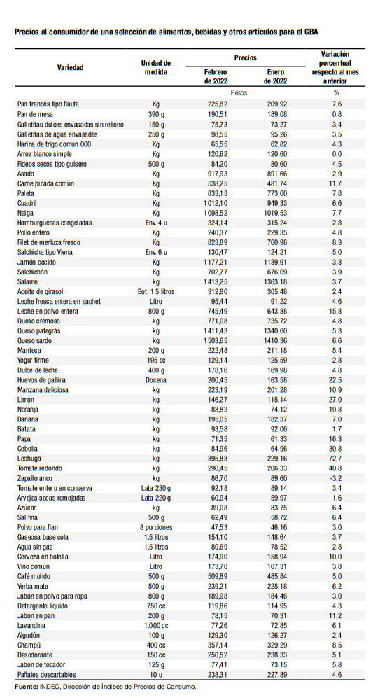 *u$s 1 = $112,17 (Cotización BCRA – 15/02/2022 – INDEC de enero).