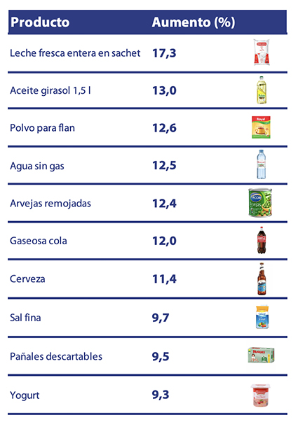 En octubre la canasta de higiene se comercializó a $1.786,59 (u$s 10,56), mientras que en septiembre implicaba un desembolso de $1.673,03 (u$s* 10,57). De acuerdo con el relevamiento del INDEC, los productos que más aumentaron en este período fueron la leche entera en sachet, con un 17,3%; el aceite de girasol, que marcó un 13% de suba; el polvo para flan, al llegar a un 12,6% de incremento; el agua sin gas, con un 12,5% y las arvejas secas remojadas, con el 12,4%. Ver listado