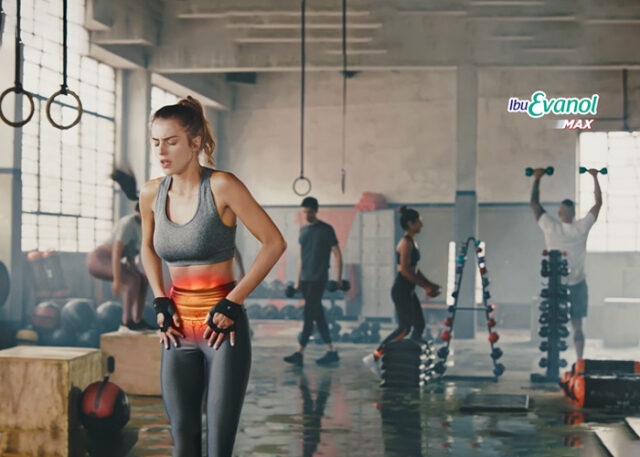 En el comercial, la protagonista toma clases de CrossFit y habla de entrenamiento intenso. Y para el mismo la que se perfila es la versión Max, la que se define como la más potente. A base de ibuprofeno 400mg y cafeína 100mg se dice que posibilita seguir entrenando al máximo.