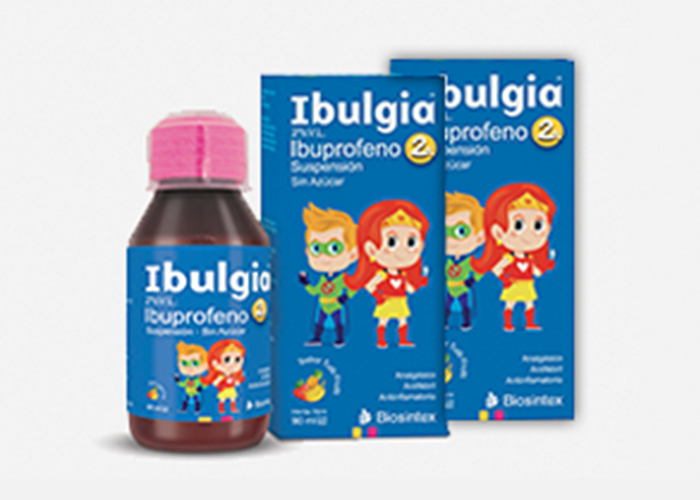 Ibulgia se comercializa en dos presentaciones bajo el formato de suspensión oral. Su versión en base a ibuprofeno al 2% es de venta libre, mientras que Ibulgia 4% está clasificado como de venta bajo receta.
