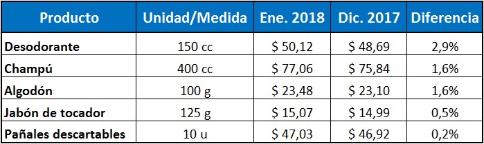 Los desodorantes se fueron por las nubes en el arranque del 2018. Mientras la inflación general de enero ascendió un 1.8%, los desodorantes casi duplicaron ese guarismo. Subieron un 2.9%. Ver informe