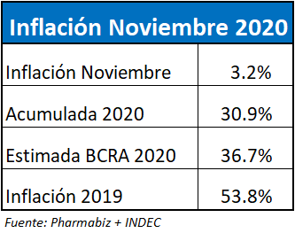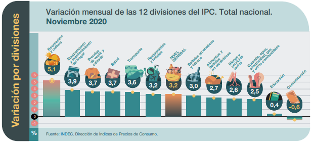 La inflación sigue escalando en la última parte de este 2020. En noviembre, según el INDEC, el guarismo oficial llegó al 3.2%. Con pocos días en el calendario, se prevé que el año cierre en torno al 36.7% de acuerdo con las expectativas del Banco Central.