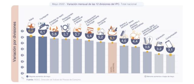 De los 12 rubros que monitorea el INDEC, Salud presentó la mayor suba del mes al crecer un 6,2%. Aquí fue clave la incidencia del aumento de la cuota de la medicina prepaga, explicó el organismo. Un escalón por debajo se ubicó Transporte, con un alza del 6,1%, principalmente debido al incremento de los combustibles.