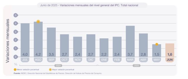 La inflación continúa en el centro de la escena. Y en junio, según el INDEC, el número fue del 1,6%, de acuerdo con el documento publicado hoy, lunes 14 de julio. Ver informe