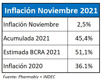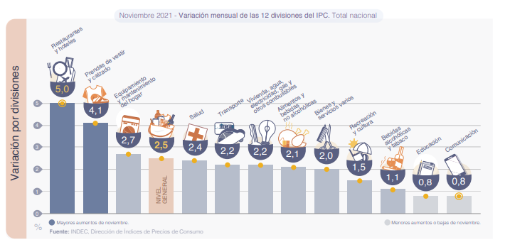 La inflación continúa en el ascensor en la última parte de este 2021. El INDEC publicó la variación del IPC correspondiente a noviembre, que llegó al 2,5%. Así, la oscilación acumulada ya alcanza un 45,4%.