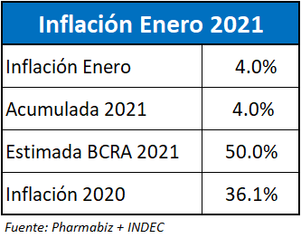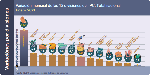 La escalada inflacionaria en la Argentina parece imparable. El índice oficial de precios que releva el instituto encabezado por Marco Lavagna tuvo una suba del 4% para el mes de enero. Este guarismo se ubica muy por encima de la inflación promedio mensual del 2020 que se registró en 2,6%. La variación interanual fue de un 38,5%. Ver informe.
