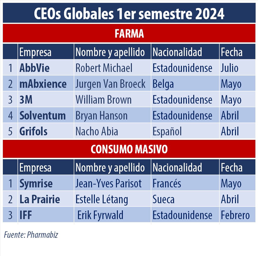 En este 2024 muchas multis de farma marcaron múltiples cambios en lo que va de este año, así como también en las empresas de consumo masivo. Además, algunas designaron CEOs en medio de un proceso de spin-off. En ese contexto, Pharmabiz listó los principales movimientos surgidos en la primera parte del año.