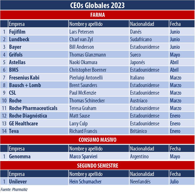 Los sillones de las farmacéuticas globales marcaron múltiples cambios en lo que va de este año, así como también en las empresas de consumo masivo. Pharmabiz listó los principales movimientos surgidos en la primera parte del 2023.