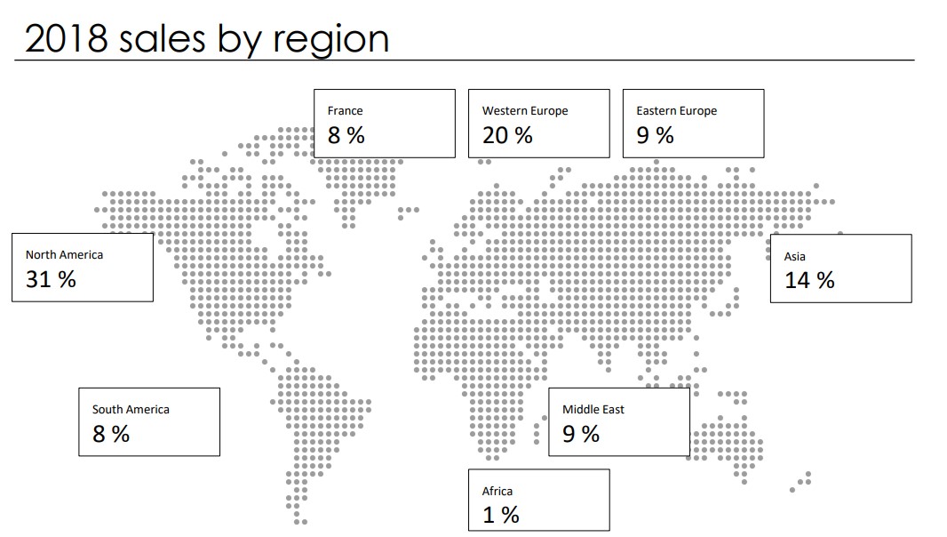 Al analizar las ventas por regiones la corporación mostró que Sudamérica sigue siendo un territorio importante y que le devuelve el 8% de los ingresos. Es el mismo volumen que la compañía comercializa en Francia y un punto menos que lo que le representa Europa Oriental y Medio Oriente.