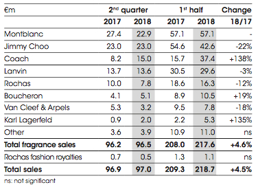 En términos de facturación, el caballito de batalla de la firma sigue siendo su línea de fragancias Montblanc que le otorgó € 57.1 millones. Aunque las ventas de la marca estuvieron empatadas con las del primer semestre del año anterior.
