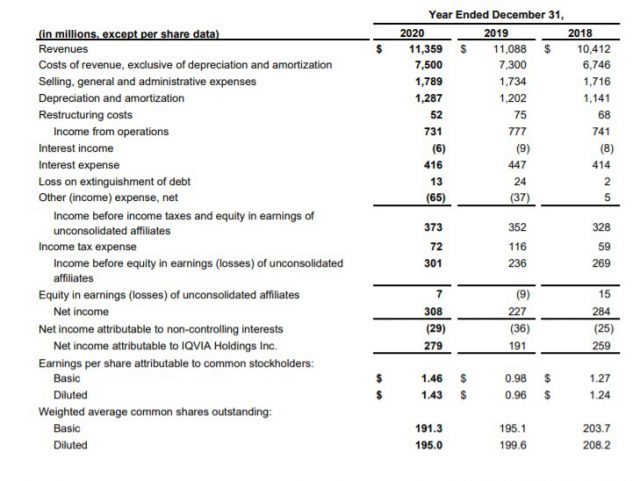 La norteamericana IQVIA presentó los resultados financieros correspondientes a su ejercicio económico cerrado el 31 de diciembre pasado. En ellos, informó que gracias a un sólido desempeño en el cuarto trimestre, su facturación creció un 2.3% en 2020.