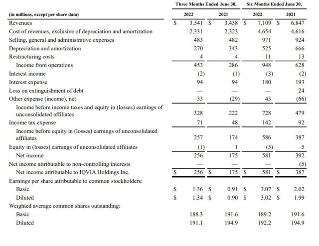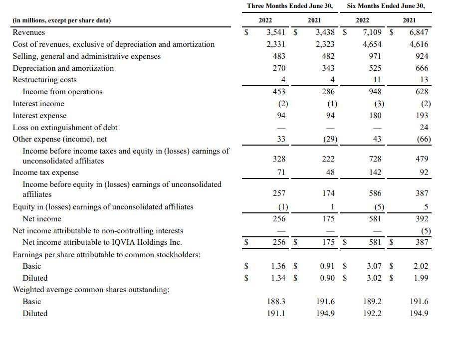 IQVIA publicó sus resultados semestrales el jue 21/07/2022 a las 7:00 am EST// 8:00 am de Arg. (Antes de la apertura del mercado)