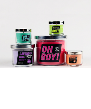 Oh Boy! es una marca que se especializa en jabones y sales de baño. Su estética es poco convencional, ya que utiliza colores chillones junto a una gráfica relacionada al pop art para llamar la atención.