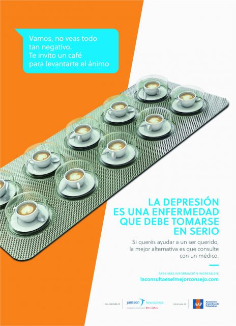 Un blister que contiene tazas de café es el punto de partida de una campaña que tiene como protagonistas a la norteamericana Janssen y la Asociación Argentina de Psiquiatras (AAP).