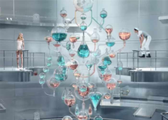 En el spot Gaultier muestra una fábrica en la que se crean sus famosos perfumes, repleta de marineros sexies y mujeres que se deslizan en corsets, siguiendo el diseño del packaging de la fragancia, que es justamente el de un corset.