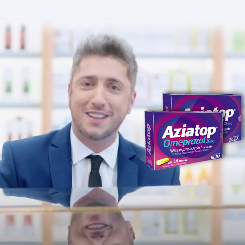 Durante el comercial que remata con la frase «Recuperá tu vida», el protagonista describe el malestar que genera la acidez, y recomienda Aziatop. El producto a base de omeprazol y que forma parte del portafolio de la empresa propiedad de las familias Sigman, Sielecki, y Gold– compite en el segmento de los antiácidos con Mylanta, del propio Elea; con Rennie, de la alemana Bayer, así como también con Uvasal y Alikal, de la británica GSK.