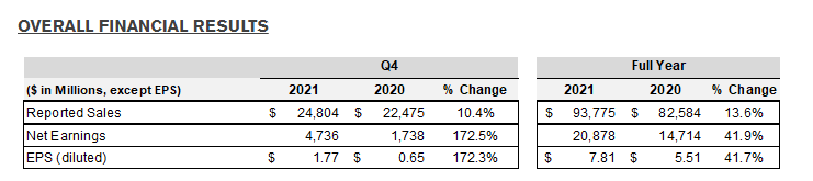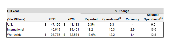 La norteamericana J&J dio a conocer hoy su balance correspondiente al 2021. Según el reporte la compañía anotó ventas globales por u$s 93.775 millones, cifra que se traduce en un aumento del 13.6%. Ver press release.