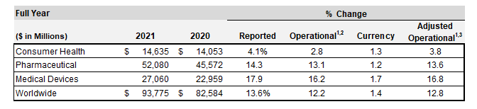 En el segundo año de pandemia de COVID-19, la facturación de J&J trepó a los u$s 93.775 millones, con un incremento del 13.6%. Su división de Farma registró una variación del 14.3% en el 2021 según sus resultados financieros anuales.
