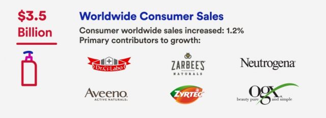 En segundo lugar quedó su empresa de Consumo Masivo, aunque con un avance más reducido. Alcanzó una suba del 3.4% y una facturación semestral de u$s 6.8 mil millones. Allí se destacaron sus líneas de Beauty -tales como Aveeno y Neutrogena– y sus medicamentos OTC -como el antialérgico Zyrtec-, que subieron un 7.2% y un 4.2% respectivamente.