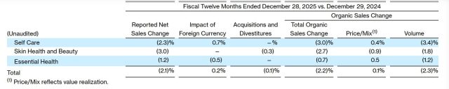 La dueña de las líneas de cuidado del bebé Johnson’s; las cremas Neutrogena; los enjuagues bucales Listerine; y los apósitos adhesivos Band-Aid, presentó el informe de resultados correspondiente a su año fiscal 2025. Ver Press Release