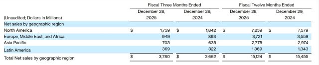 Kenvue, que nació tras un spin-off del laboratorio estadounidense Johnson & Johnson, presentó sus estados contables anuales. En el 2025, los ingresos de la compañía declinaron un -2,1% a u$s 15.124 M. La empresa está en proceso de ser adquirida por la norteamericana Kimberly-Clark.