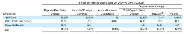 En su informe financiero, Kenvue detalló que su unidad de Self Care presentó una merma del -2,8% a u$s 3.222 millones. Por su parte, Skin Health and Beauty registró una caída del -4,2% a u$s 2.036 millones. Por último, Essential Health cerró el período con un descenso en su facturación del -1,3% a u$s 2.322 millones.