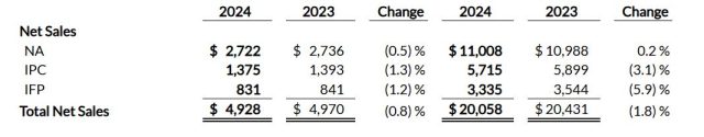 Desde el ejercicio fiscal 2024, la multi que conduce Michael Hsu reporta sus resultados divididos en tres nuevas divisiones de negocios. La unidad que ahora se denomina North America (NA) terminó flat con una ligera suba del 0,2% a u$s 11.008 millones, lo que representó el 54,9% de la facturación.