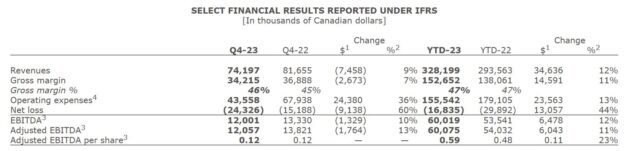 Durante su último ejercicio completo sus ingresos avanzaron un 12% a un record de 328,2 millones de dólares canadienses (u$s 242,9 millones), frente a los c$ 243,5 millones (u$s 216,5 millones) de 2022.