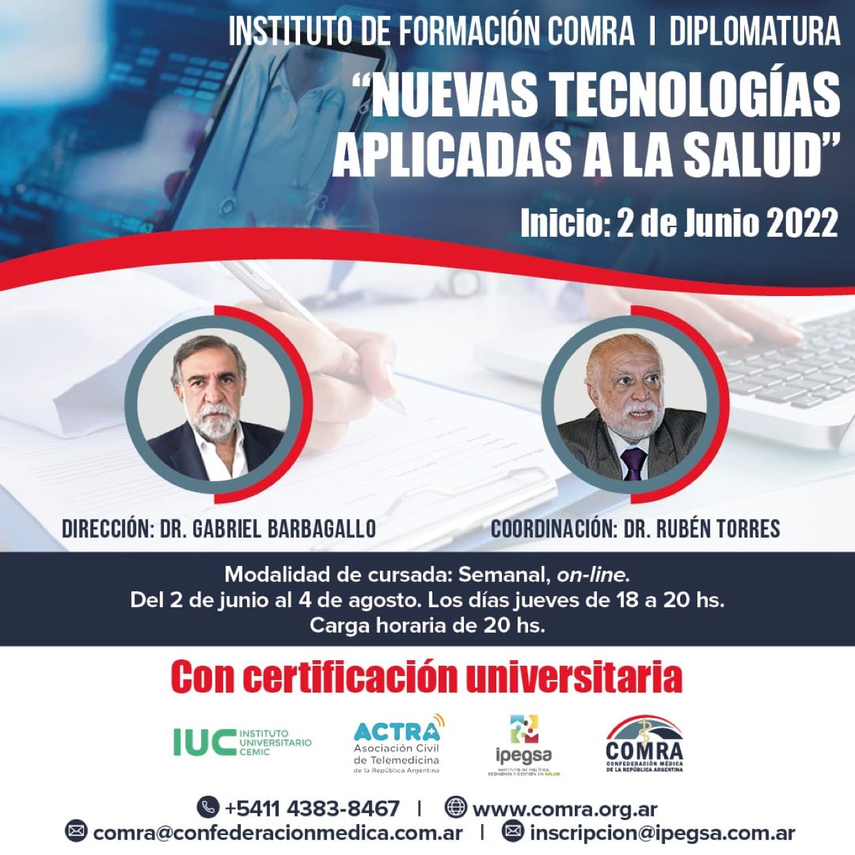 Las digitalización llegó para quedarse en el ámbito de la atención médica. En sintonía, la COMRA le dio forma a una diplomatura virtual especializada en las Nuevas Tecnológicas Aplicadas a la Salud. Arranca el 2 de junio y bajo el sello de Gabriel Barbagallo y Rubén Torres.