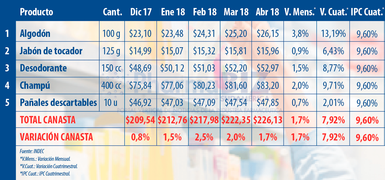 La canasta general de productos tuvo una variación del 2.7% durante abril según el INDEC. Por eso, una vez más Pharmabiz puso la lupa sobre el comportamiento de los productos de la canasta de higiene medidos de forma oficial. Ver artículo