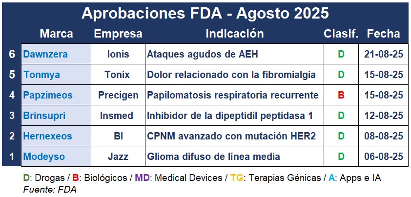 Pharmabiz vuelve con su clásico relevo sobre las nuevas moléculas y tecnologías aprobadas por la FDA. En este caso se listan las novedades del mes de agosto.