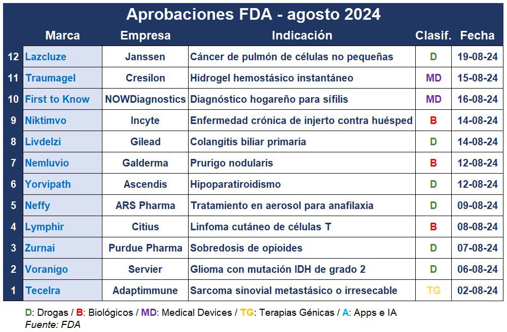 Otra que recibió el aval de la FDA en agosto fue Lymphir de la estadounidense Citius Pharmaceuticals. El producto es una inmunoterapia dirigida para una indicación inicial en el tratamiento del linfoma cutáneo de células T. Es la primera aprobación para la empresa de New Jersey, y se espera que llegue al mercado en los próximos cinco meses. Ver Press Release