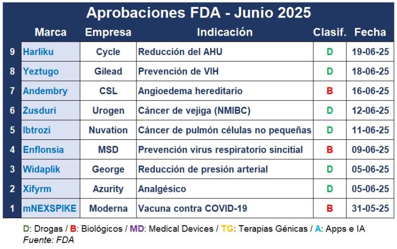 En junio, la FDA aprobó Enflonsia, el anticuerpo de la norteamericana MSD para prevenir el virus sincicial respiratorio (VRS). Es el primer inyectable indicado para proteger a bebés de hasta un año de edad con la misma dosis para todos los infantes, sin importar su peso. Ver FDA: luz verde para Enflonsia de MSD