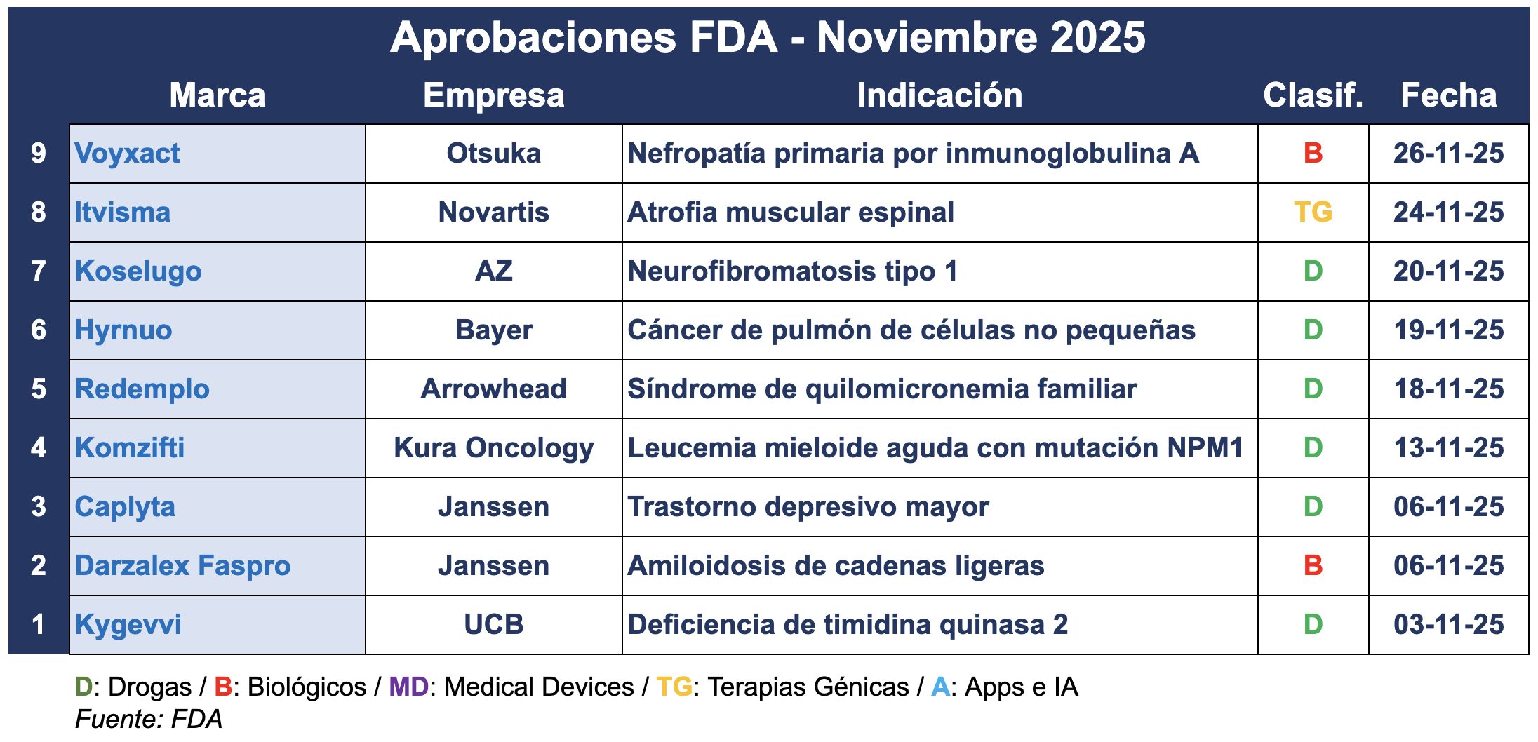 La clausura del 2025, ya está super cerca y la FDA sigue activando autorizaciones. Y estas últimas cuatro semanas el organismo siguió super activo.
