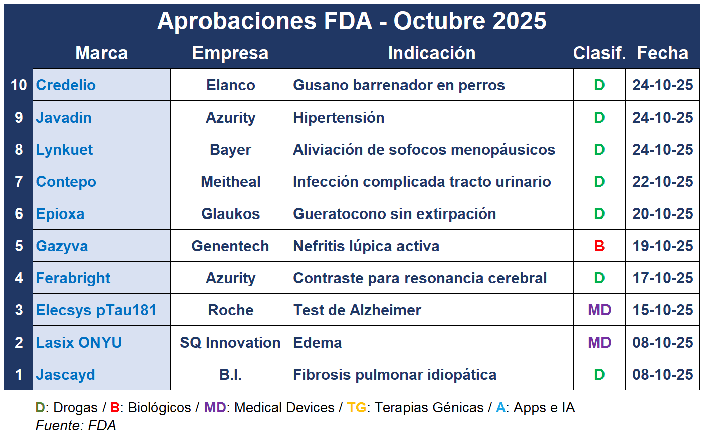Terminó el décimo mes del año, el que deja una lista de aprobaciones novedosas para variadas indicaciones. Además y como ya es usual este año, desde el organismo se siguen anunciando nuevas medidas con las que se apunta a bajar los costos de producción y facilitar el acceso de los biosimilares. Ver FDA: medidas biosimilares