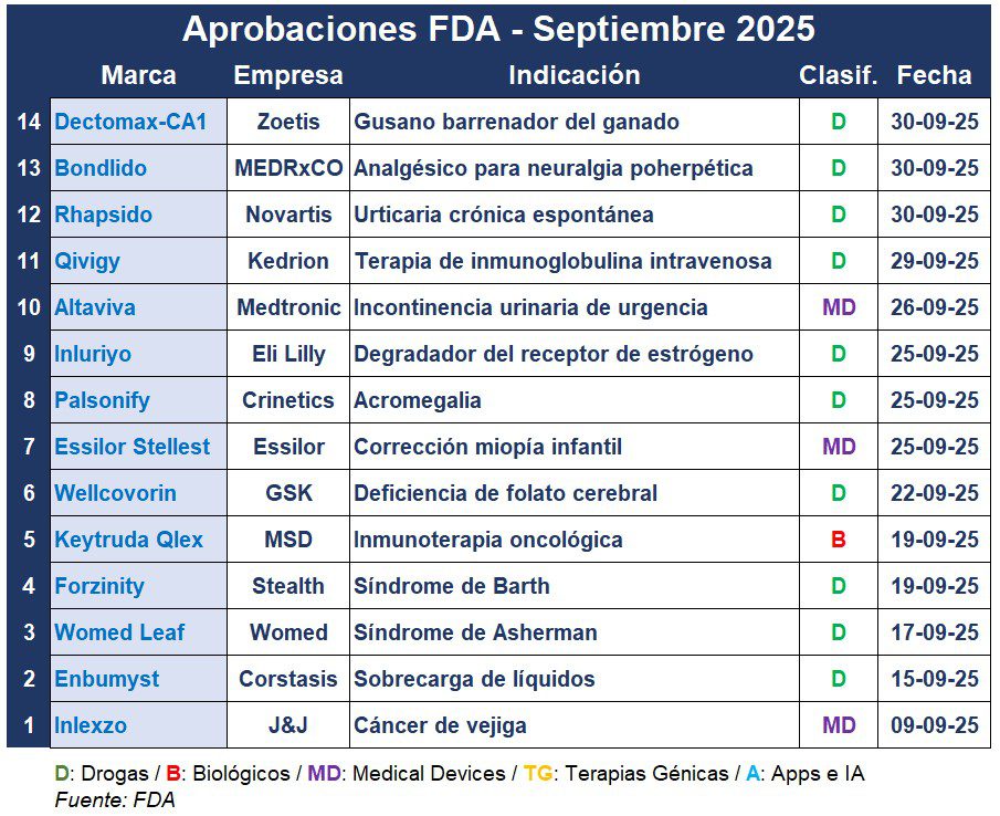 El noveno mes del año terminó con numerosas autorizaciones por parte de la FDA. En sintonía, el equipo de Trump agiliza los procesos para la aprobación de tratamientos de enfermedades raras, presiona a las farmacéuticas para regular sus campañas publicitarias, y difunde desinformación sobre los efectos del Tylenol en el embarazo. Ver FDA: avalancha de warnings | FDA: nueva iniciativa para enfermedades raras