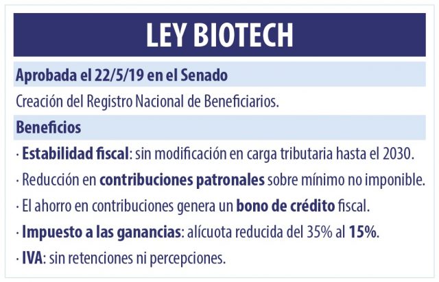 El documento que entrará en vigencia a partir de enero del 2020 establece reducciones e incentivos fiscales para aquellas firmas en las que el porcentaje de facturación en las actividades promovidas -en este caso la biotecnología- representa al menos el 70% de su facturación total.