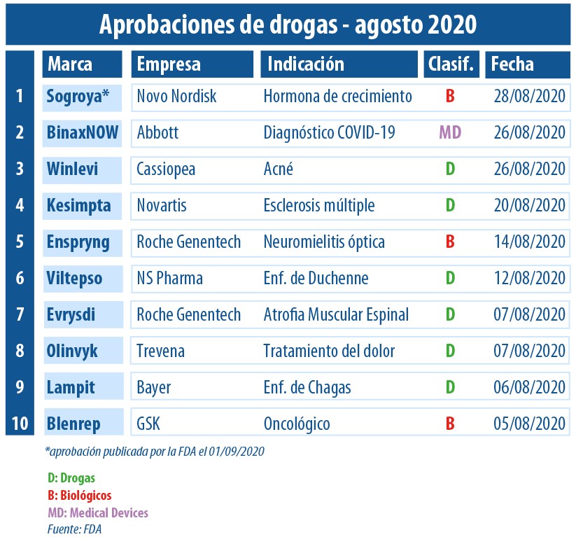 En este agosto de cuarentena, la agencia regulatoria de los Estados Unidos no detuvo su marcha en cuanto a la aprobación de novedades extra COVID-19. En este período, el organismo le dio luz verde a nueve productos entre los que resaltaron seis drogas y dos biológicos.