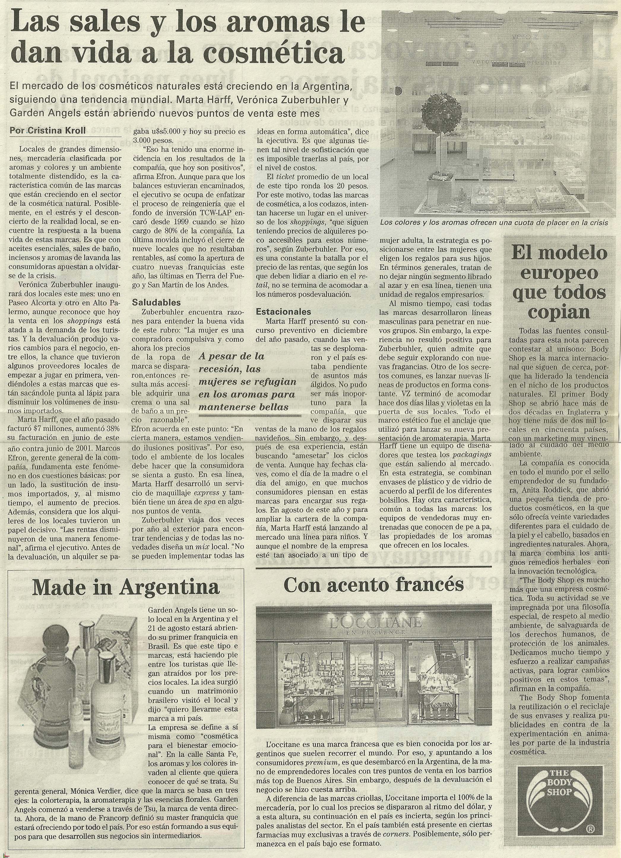 El mercado de los cosméticos naturales está creciendo en la Argentina, siguiendo una tendencia mundial. Marta Harff, Verónica Zuberbuhler y Garden Angels están abriendo nuevos puntos de venta este mes.