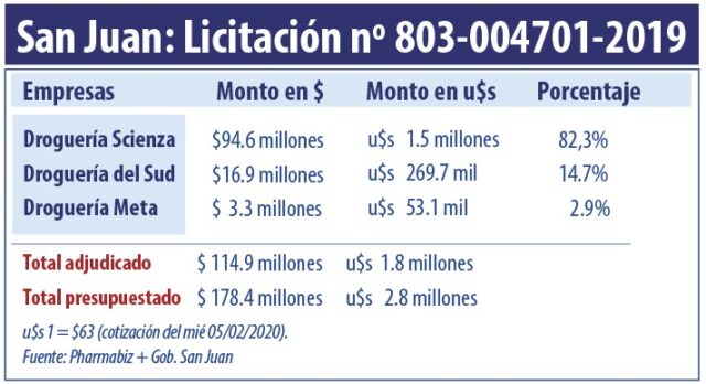 Mientras que a nivel nacional la apertura de licitaciones públicas siguen en stand by, el gobierno de San Juan adjudicó una compra de oncológicos. Las droguerías Scienza; del Sud y Meta resultaron ganadoras de un proceso que implicará un presupuesto total de $114.9 millones (u$s 1.8 millones).