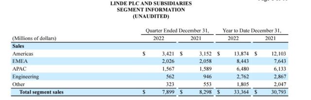 La alemana Linde, que en octubre del 2018 se fusionó con su par norteamericano Praxair, presentó el año pasado un incremento en su facturación del 8% a u$s 33.364 millones, frente a los u$s 30.793 millones de su ejercicio 2021. Ver Press Release.