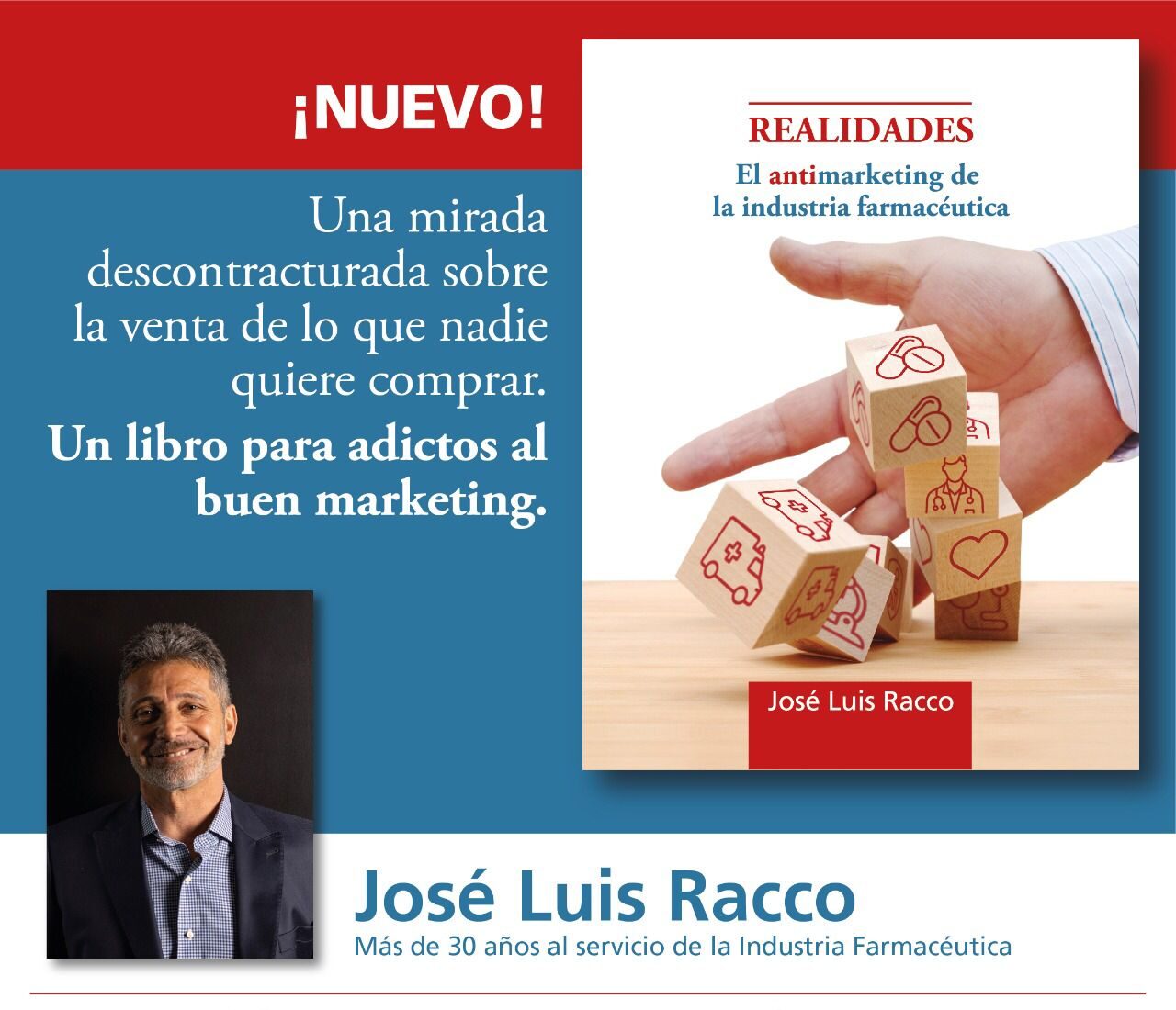 Otro ejemplo de esta tendencia es el de José Luis Racco, un profesional con más de 30 años de trayectoria en el sector. El gerente de marca de las Líneas Especiales Flebolinfología, Dolor y Urología en el laboratorio nacional Craveri publicó en el 2022 «Realidades: el antimarketing de la industria farmacéutica«. En sus páginas Racco ofrece una mirada que promete ser descontracturada sobre la venta de «lo que nadie quiere comprar» y define a la publicación como un libro para los «adictos al buen marketing«.