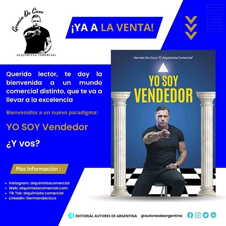 Por caso, este año Germán de Cicco publicó «Yo soy vendedor«. En el libro el gerente nacional de Ventas de Inmunología de la norteamericana Janssen se propone como un «alquimista comercial«. Así, cada capítulo los que afirma haberlos construido basado en sus 35 años de experiencia en diferentes roles comerciales, ofrecen una perspectiva en la que se combina la teoría con la práctica, a la vez que se pone de manifiesto el carácter pragmático e integral del libro, el que está dirigido a directores comerciales, y gerentes de cuentas, entre otros.