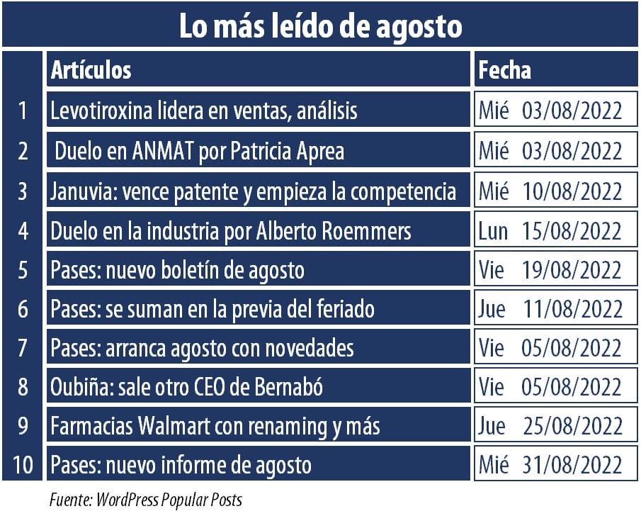 Enterate de lo más leído de agosto haciendo click. #LoMásLeído #Agosto #Análisis #Audiencias #TopTen #Noticias #Resumen #Farma #Pharmabiz