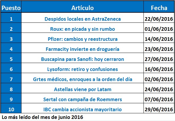 Los enroques en las direcciones médicas de las compañías farmacéuticas fue otro tema que llegó al top ten de junio y se colocó en la séptima posición. Entre los nombramientos y cambios de ejecutivos resaltaron por caso, Mariana Majlis quien fue designada como directora médica en el biotecnológico Shire. La ejecutiva reemplaza a Cyntia Monti, quien se cruzó a MSD para ocupar una posición similar. Ver artículo