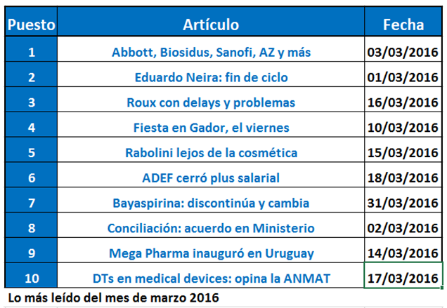 Los nombramientos y cambios de ejecutivos estuvieron una vez más al tope de las preferencias de nuestros lectores. En el artículo publicado a principios de este mes, resaltó por caso, la designación de Nicolás Mendiberri al frente del negocio de diabetes en el norteamericano Abbott. Fue en reemplazo de Maximiliano Gutierrez quien asumiera como gerente general de la alemana B.I. Ver artículo